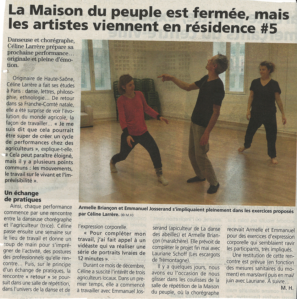 « GRAINS » résidences de création hors les murs, dans le cadre de l’aide à l’émergence de la Région Bourgogne-Franche-Comté en 2020 et 2021.
