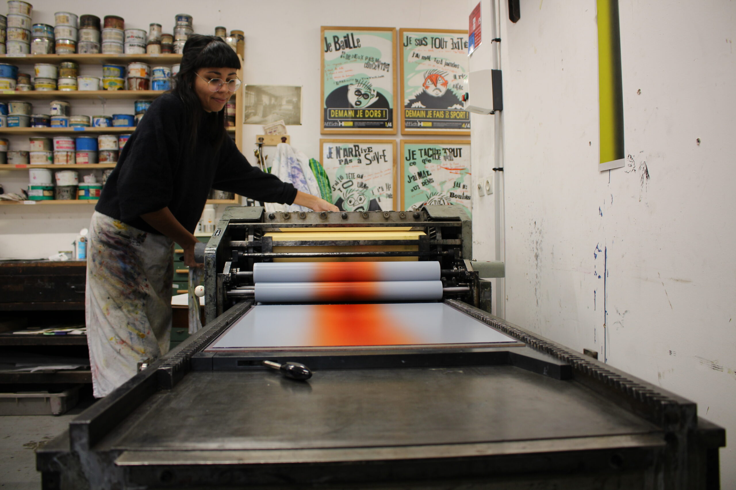 Natalia est imprimeuse typographe et éditrice. Elle travaille depuis 2015 à son atelier Peso Pluma à Vaulx-en-Velin, où elle imprime des livres, des affiches et des pochettes de disque. L’atelier Peso Pluma est un lieu de rencontres et de collaborations où des collectifs, des musicien.ne.s, des artistes et des graphistes viennent imprimer leurs projets.