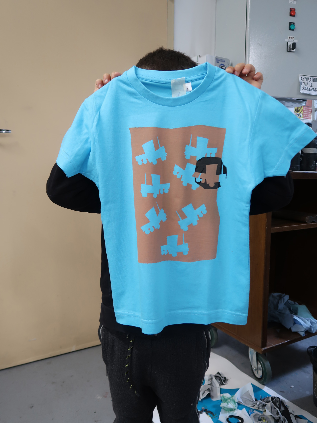 Après-midi consacrée aux jeunes du Contrat de réussite éducative pour la création de motifs imprimés sur T-shirts en sérigraphie. Cet atelier clôturait l’année pour les jeunes du CRE, comme nous l’avions déjà réalisé l’année précédente. Pour l’année prochaine, nous pensons proposer une date avant la fin de l’année scolaire, puisque moins de jeunes étaient présents car déjà partis en vacances.