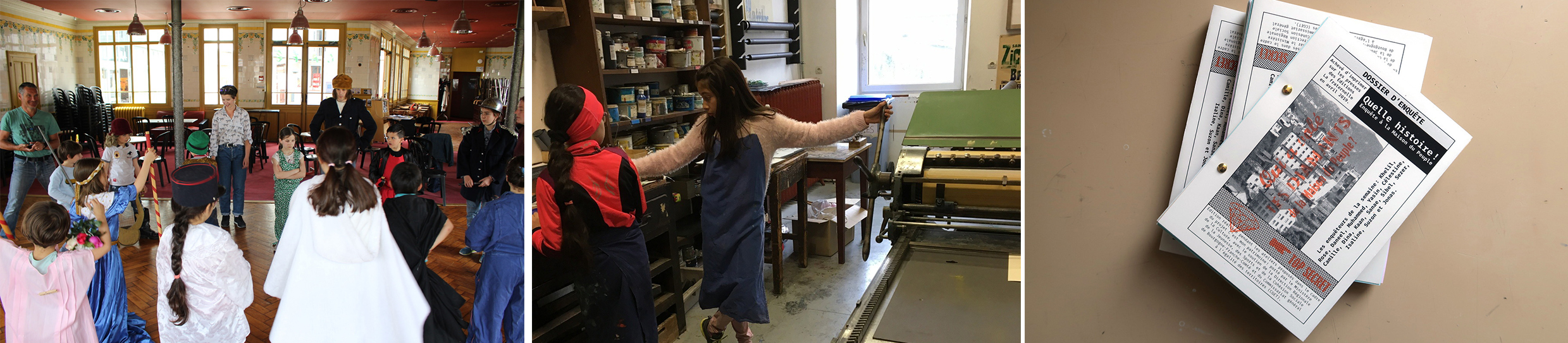 Des ateliers de création alternent avec des temps d’échange sur les pratiques artisanales et industrielles emblématiques du territoire et l’observation des formes graphiques présentes dans les lieux, pouvant servir de source d’inspiration.