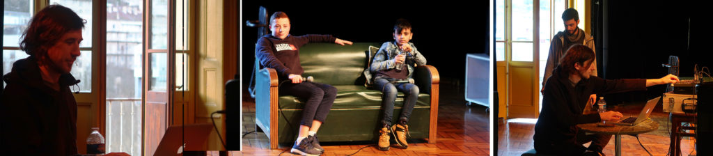 Pour désinhiber les participants avec leurs mots et leur voix, nous proposons une séance d’expression au micro à travers des effets du type auto-tune (correcteur de justesse) et pitch (déformation de la tonalité vocal), ou par le biais d’une voix de synthèse. À l’issue de l’atelier, les morceaux seront ensuite exportés et interprétés par les participants lors d’un concert/ performance en public. Les textes pourront être chantés ou dits en live, ou encore sous forme de performance, playback, etc. Les morceaux seront ensuite masterisés et restitués aux participants au format numérique WAV et MP3 pour qu’ils puissent garder une trace de leur production.