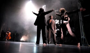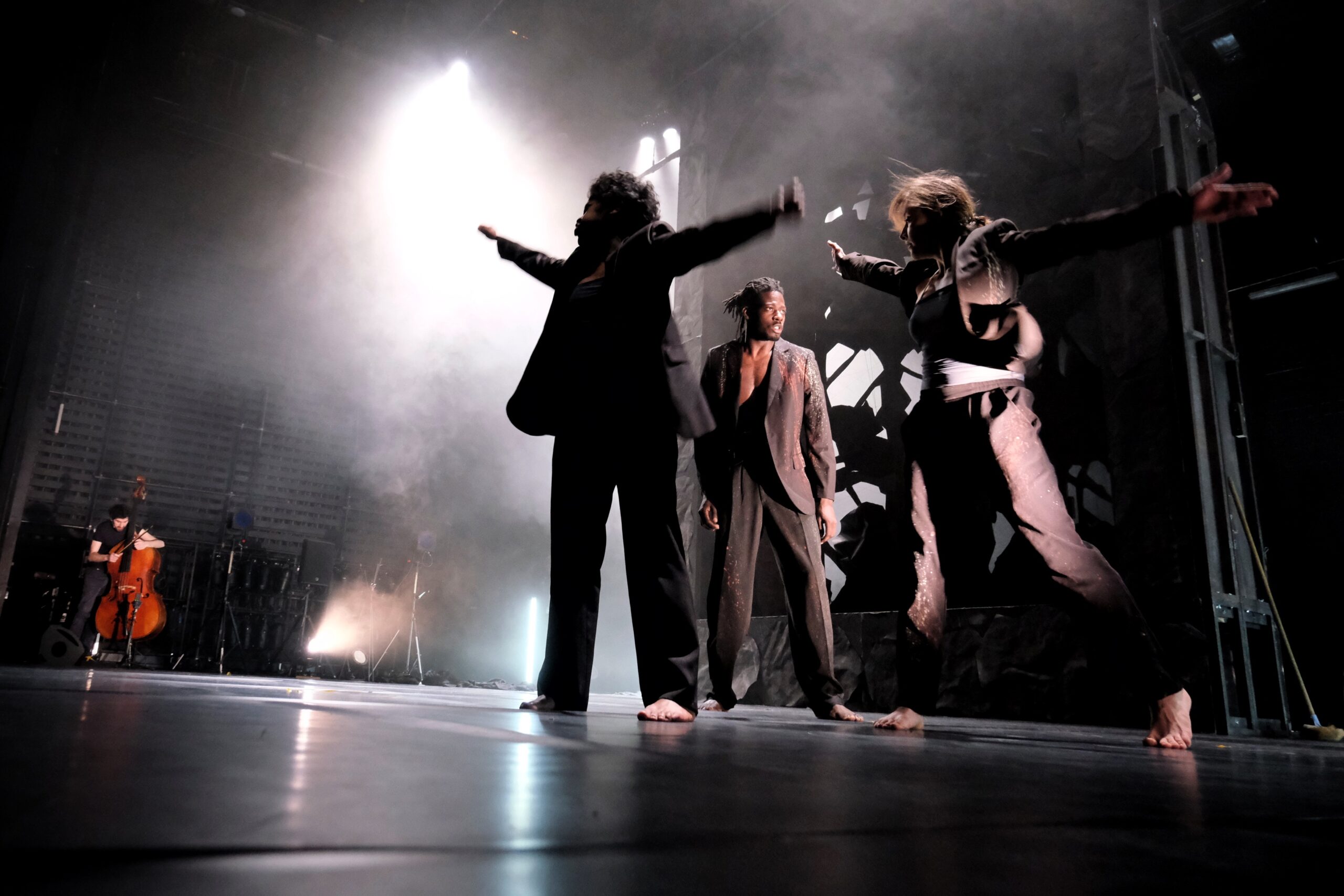 Performeuses et musiciens évoluent dans chacune de ces structures. Les corps altérables, friables, doués de transformation de la chorégraphie offrent des scènes de danse pulsées, énergiques et syncopées qui forment une polyphonie avec l’immersion sonore de l’AudioVirus de Helge Sten. La danse montera progressivement vers un état de ravissement, d’extase, où les trois interprètes se tiennent hors d’eux-mêmes.’’
