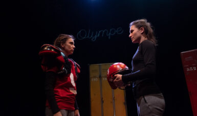 Cette adaptation contemporaine transpose dans l’univers sportif le récit d’Homère : deux équipes, Achéens et Troyens, s’affrontent à mort sur le terrain depuis presque 10 ans. Depuis l’Olympe, les dieux sont des financeurs cyniques prêts à tout pour faire gagner leur camp. Les commentateurs rapportent avec passion les batailles, la mascotte prend la parole pour aider les spectateurs à s’y retrouver et Hélène interroge sa condition de femme.