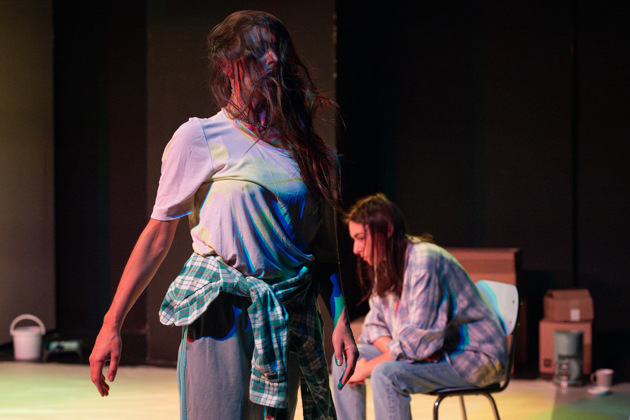 À l’intérieur de cela, surgit la littérature, frontale et dépouillée, qui explore la mémoire des murs, des corps et des voix qui hantent ces lieux, jusqu’à l’affrontement des deux femmes. Un geste tressé de corps et de mots qui dit les batailles du présent et les gestes d’une fille pour en finir avec l’héritage de la violence.
