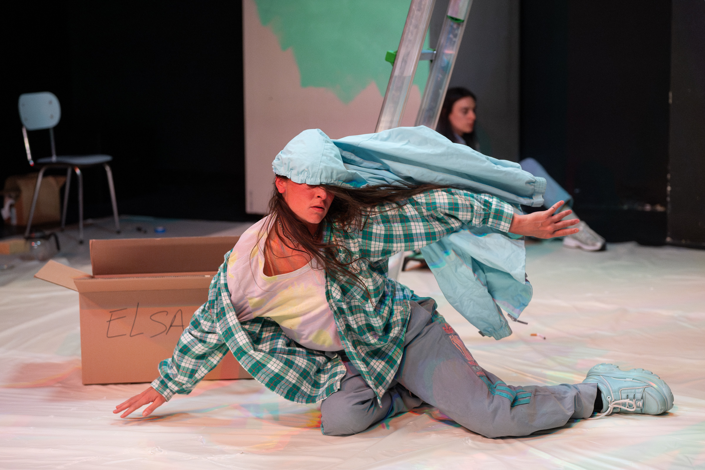Composé en deux parties, le spectacle offre un récit visuel qui nous plonge dans l’appartement de la petite Elsa et de sa mère au moment de leur installation : le portrait d’un lieu et d’une femme en détresse, d’une mère abusive qui peine à habiter son espace de vie.