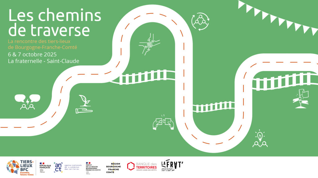 “Les Chemins de Traverse”, ce sont les deuxièmes rencontres régionales des tiers-lieux organisées par Tiers-Lieux BFC, que nous accueillerons à La frat’ les 6 & 7 octobre 2025, pendant la Semaine Européenne du Développement Durable.