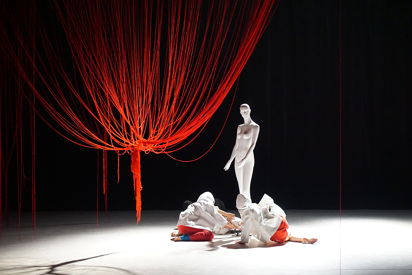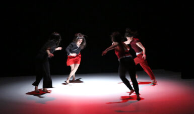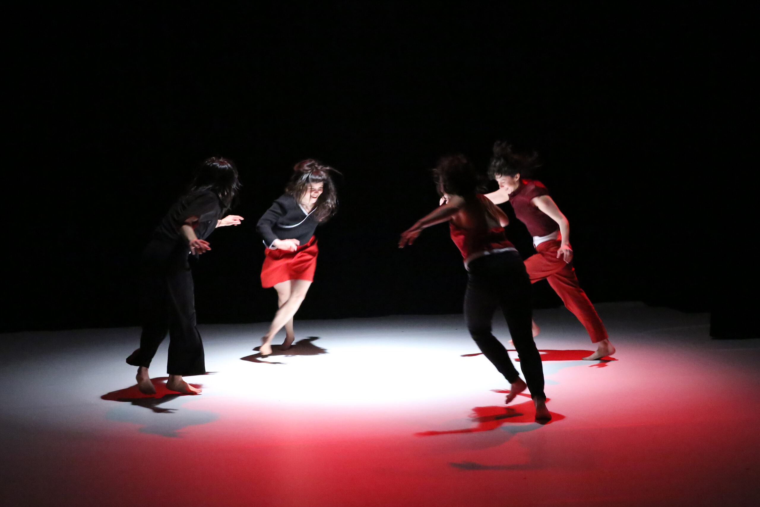 Rouge Carmin [Histoires d’un tabou] nait de l’envie de réappropriation de ce fluide caché, afin de le sortir de l’ombre et du mystère. Au plateau quatre femmes entonnent un même rythme, celui d’une danse qui se déploie, se propage, se synchronise, se désagrège. C’est la couleur d’un ventre qui cède, d’un souffle qui écoute, d’un mystère qui se noie. Cette pièce célèbre la nature cyclique de toute chose, de la croissance à la dégénérescence, de l’expansion à la retenue, de la vie à la mort. Cette création se veut audacieuse, militante, féministe, afin de délier les langues, dissoudre les silences, les suppositions et laisser libre l’expression autour d’un sujet universel et tabou à la fois.