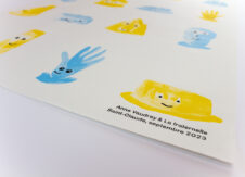 Pendant deux semaines de résidence, Anne a dessiné, peint et imprimé sa série Du beurre et des pleurs. Le résultat : 4 estampes 50x70cm / deux beurres jaunes et dorés / deux pleurs bleus et argentés / des visages à l’encre à la main (de Anne bien sûr) / un poster en 3 passages, plié… ou pas. Le tout disponible en boutique et bientôt à l’artothèque !