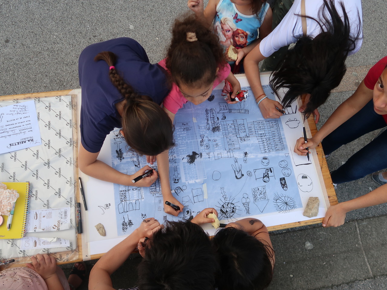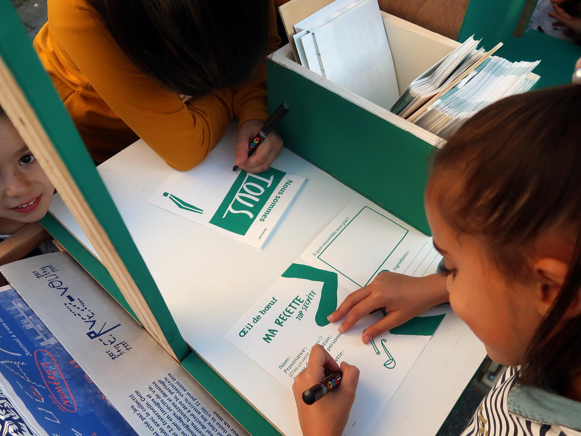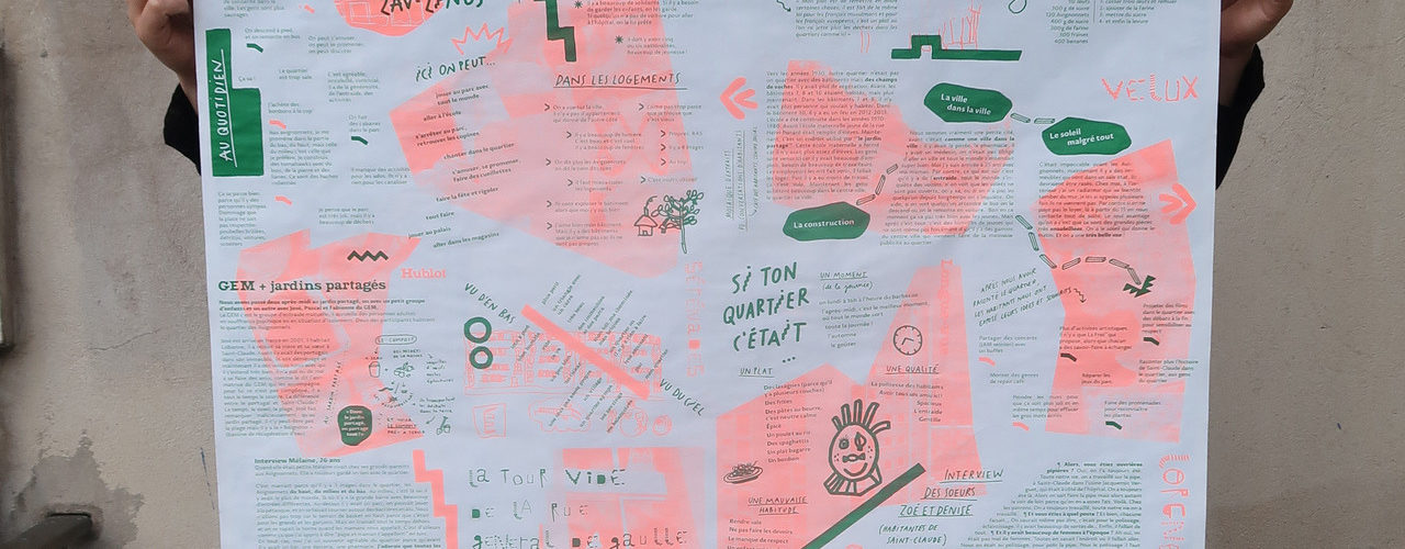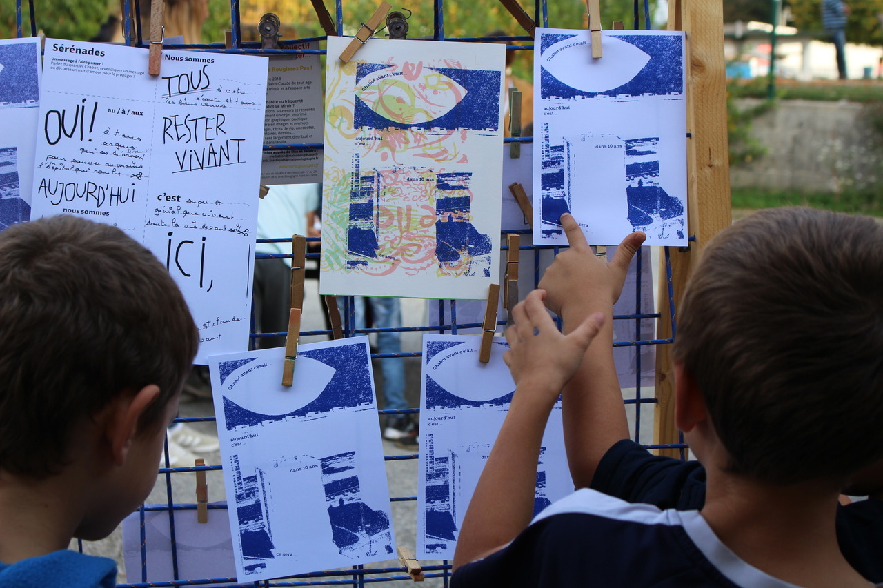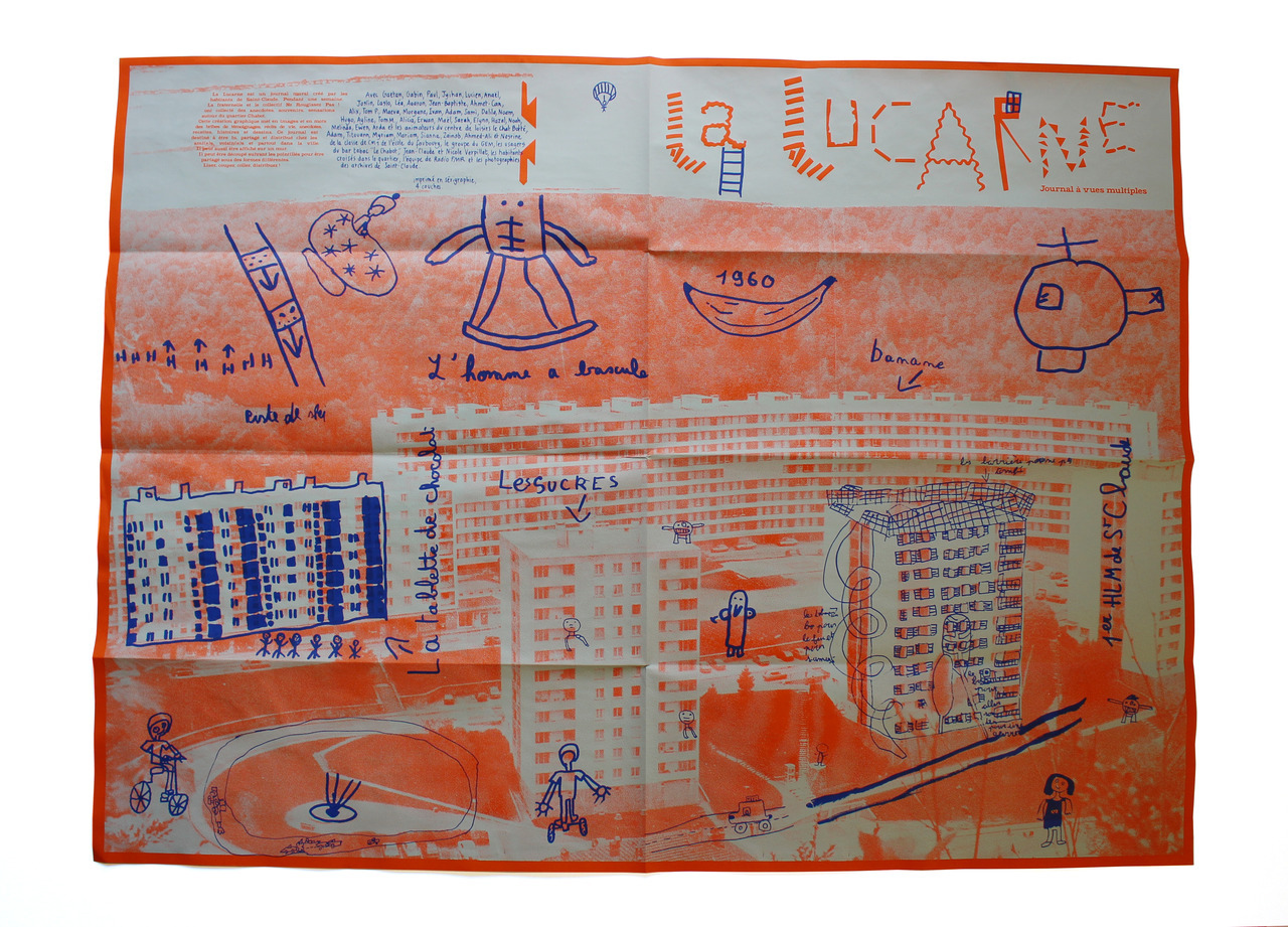 En 2018, La fraternelle et le collectif Ne Rougissez Pas ! (Ivry) ont accompagné la création d’un journal mural collectif réalisé avec les habitants du quartier Chabot. Cet objet a été conçu, créé, imprimé et diffusé sur une semaine, au mois d’octobre et a mobilisé des élèves de l’école du faubourg, les enfants du centre de loisirs “le chat botté”, le GEM, les participants à une session du projet radio FMR (Cie Terraluna de Besançon) et des habitants, passants, clients des commerces du quartier… Son nom : LA LUCARNE.