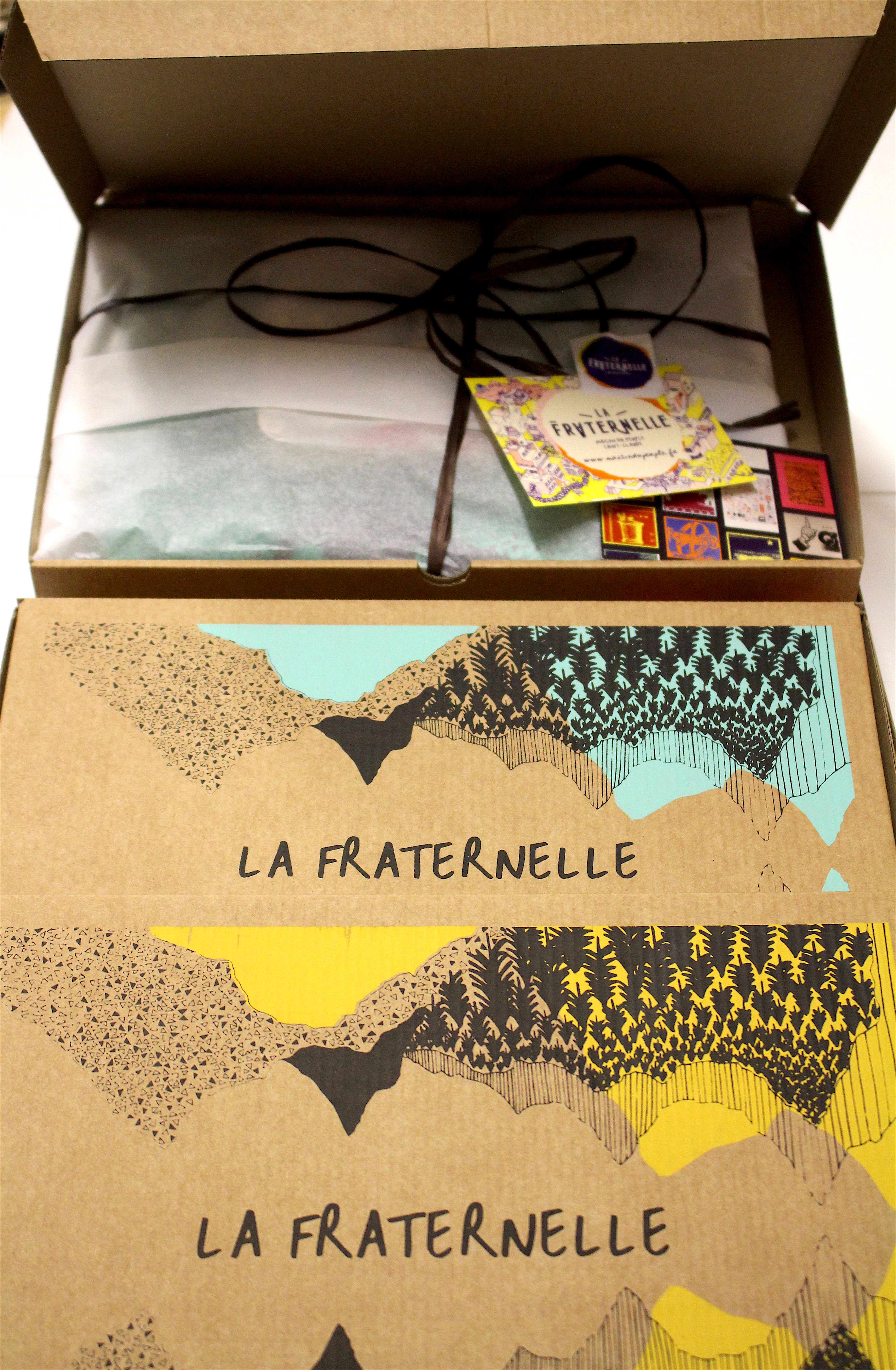 Boîte (sérigraphiée) cadeau remplie de (le choix se fera par l’équipe de La fraternelle… surprise !!) :