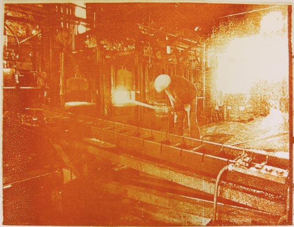 La photo de départ a été prise aux Forges de Syam. Elle représente un ouvrier près des bacs d’acide qui décape les barres à la sortie du laminoir.