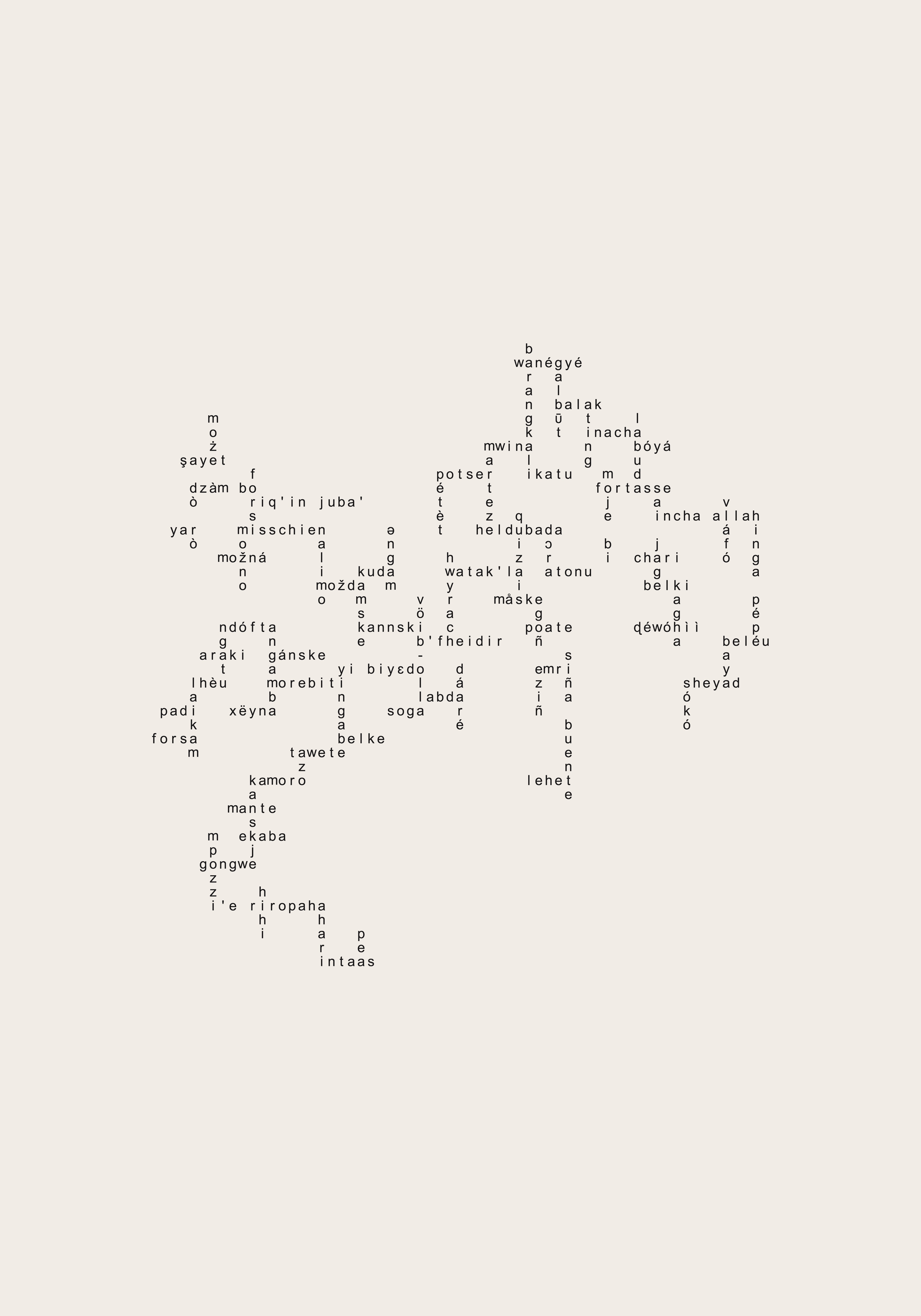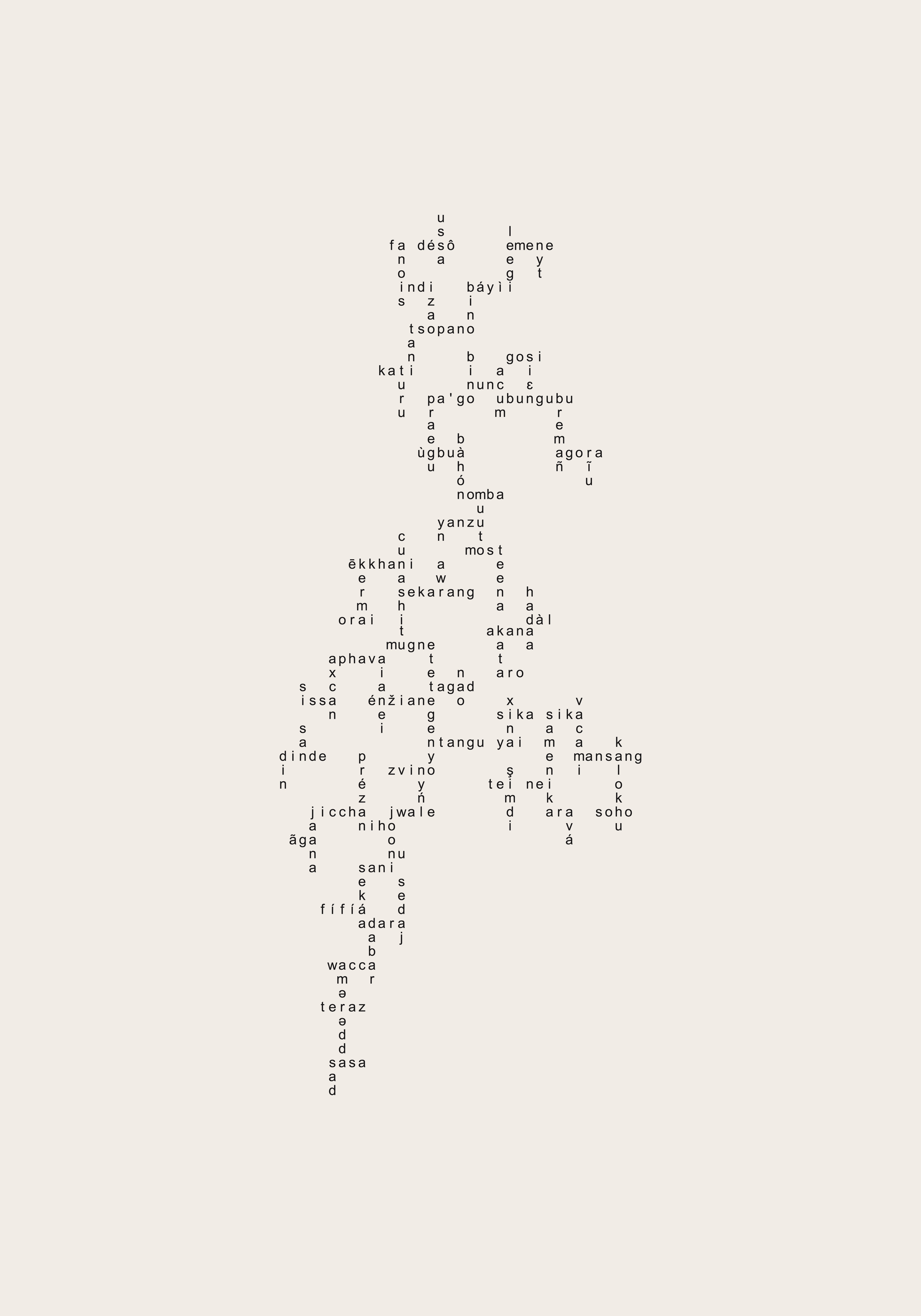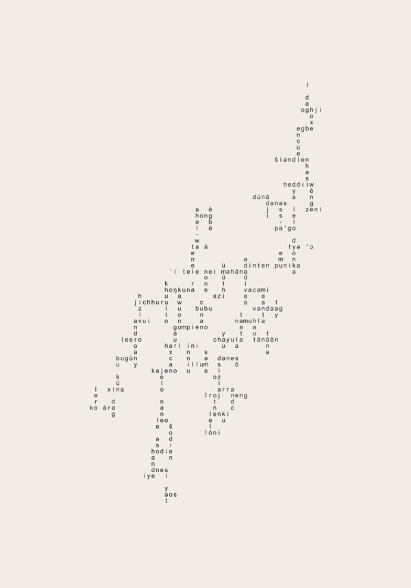 Ce travail est lié au vaste projet « glossolalie » d’écrire un texte qui traverse les 7000 langues de la planète.