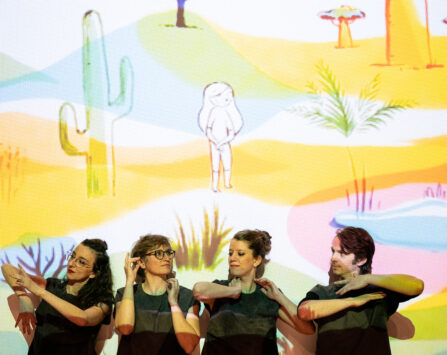Dans un espace blanc, deux danseurs évoluent parés de costumes étonnants, et s’amusent à brouiller les pistes : animaux, princesses ou super-héros, ils révèlent différentes figures reconnaissables et pourtant pleines d’étrangeté. une danse étonnante qui parle de travestissement et de métamorphose, entre déguisements d’enfants, culture populaire et tradition carnavalesque.