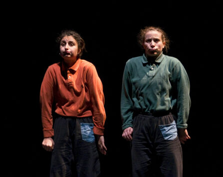 Comment être ensemble ? Les deux danseurs puisent dans la qualité de leurs gestuelles proches afin de faire émerger la complexité d’une relation. En essayant « d’être ensemble », ils dévoilent l’impossibilité de cette tentative et, à force d’écoute et de regard, cherchent plutôt à « être l’autre ». Le duo dessine un jeu de miroir où chacun essaye de ressembler à celui qui est en face de lui mais ne fait, finalement, que répéter l’échec d’être exactement semblable.