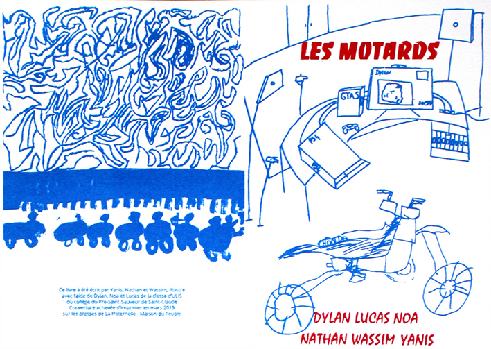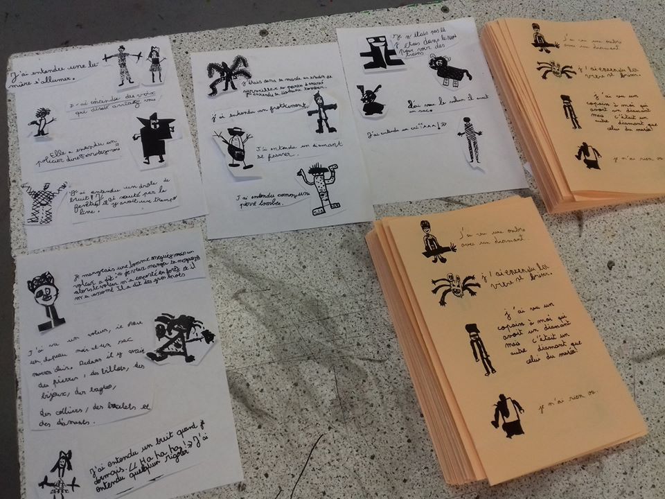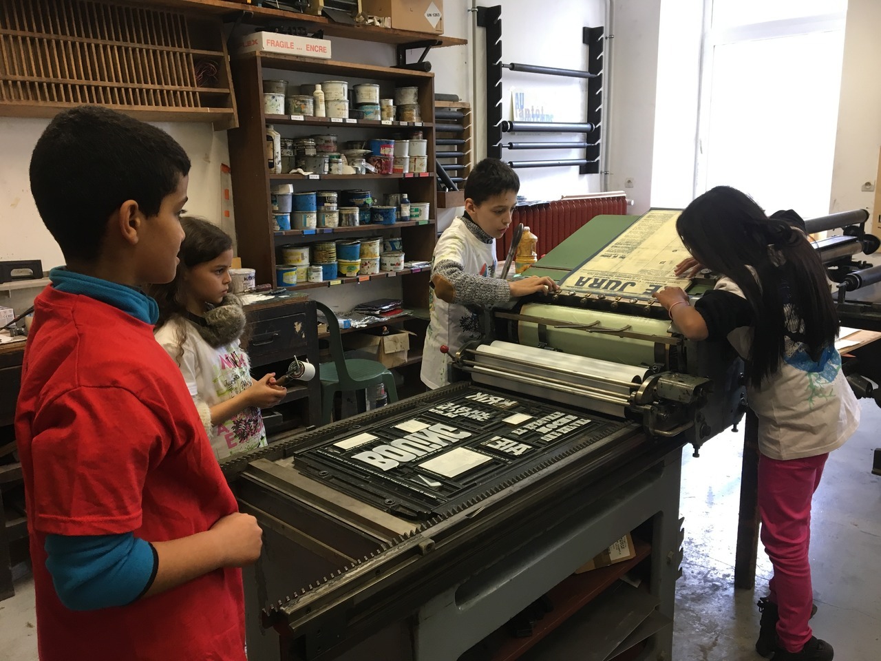 Pendant une demie-journée, les élèves de la classe ULIS du Pré-Saint-Sauveur ont pu imprimer des couvertures pour des livres qu’ils avaient réalisés au préalable en cours avec leur professeur. Ces couvertures ont été imprimées en sérigraphie pour les fonds et typographie pour le texte.