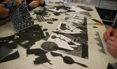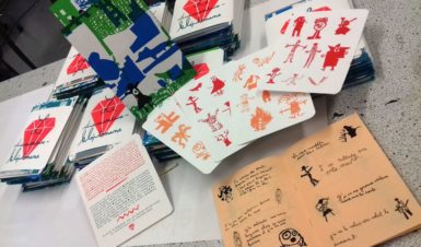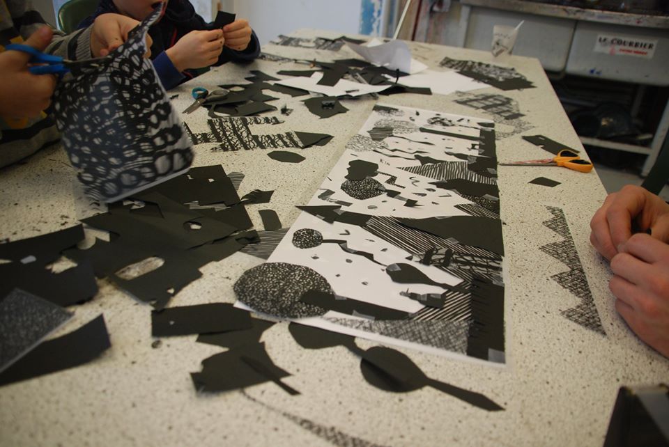 Accompagnés par l’équipe de choc des Éditions La fraternelle et de l’illustrateur Jérémie Fischer, les 67 élèves de CP, CE1 et CE2 ont imaginé, découpé, collé, imprimé, plié, façonné une centaine de petits leporellos en sérigraphie. De beaux moyens mis à la disposition de leur énergie débordante !